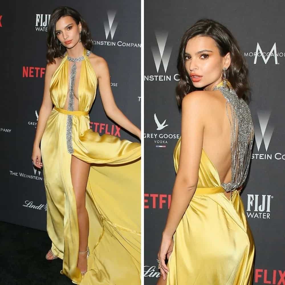 Emily Ratajkowski is widely recognized for her enchanting allure, and her fashion selections consistently accentuate her elegance and personal style. Her standout appearance at the Golden Globe Awards was marked by a graceful, flowing yellow dress that emphasized her striking and irresistible presence.