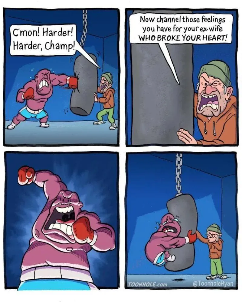 Everyone, no matter how strong or stoic they appear, has moments when emotions come rushing out. Life isn’t just about toughness—it’s about learning when to hold on and when to let go. In this comic, a coach gives his fighter unexpected advice mid-bout: let the tears flow.