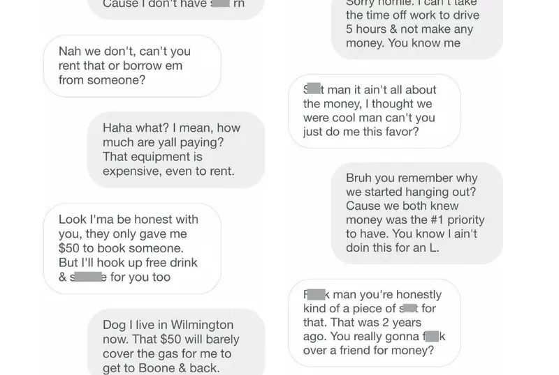 This guy and all of his frat bros were throwing a party and decided to look for a local rapper, so he reached out to an old friend he hadn’t seen in ages. It seemed like a nice gesture until the old friend realized the pay was crap.