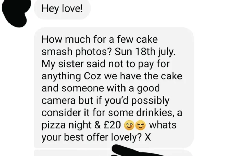 Parents of young babies seem to have a bad habit of trying to get anything and everything for free from their friends. Maybe it’s because they throw away thousands of dollars a year on diapers alone. This mom wanted some cake smash photos of her baby.