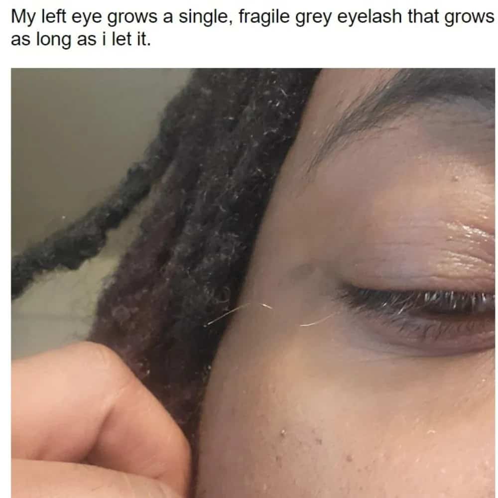 Discovering one’s first gray hair can be a somewhat traumatizing experience for some individuals. Finding gray hair in a location that can be easily concealed is one thing, but this person’s gray hair is situated in a place that is not so easily hidden.