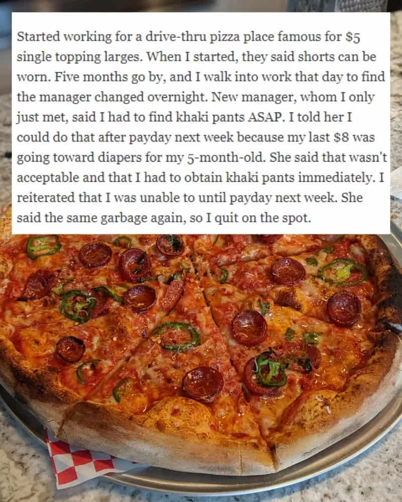 Moreover, new employees might need to allocate their initial paychecks carefully, especially if they have crucial financial commitments. In this case, the manager’s disregard for the employee’s circumstances, prioritizing a dress code change at a pizza place over providing for a child, raises legitimate questions about their judgment and empathy.