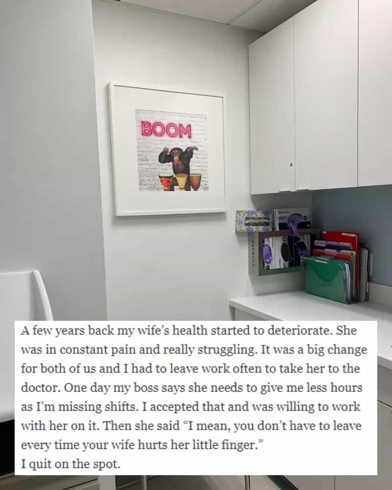 Unfortunately, in this instance, the employer displayed a complete lack of empathy or understanding of what this person’s wife was going through. Such disrespectful and heartless comments are understandably unacceptable, and quitting in response to such insensitivity is entirely justifiable.