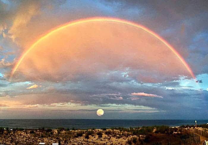 Every so often, nature puts on a performance that feels handcrafted. In 2017, a Maryland photographer glanced toward the water just in time to witness something extraordinary. The sky was glowing with warm gold, a flawless rainbow stretched across the horizon, and the sun hovered like a glowing pearl above the waterline. The scene looked like something out of a dream.