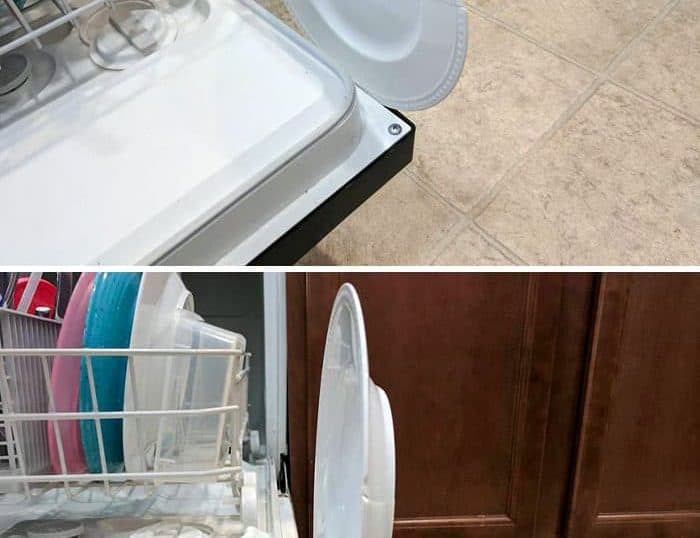Just when you think your night is about to get worse, luck steps in. Someone accidentally dropped a ceramic dinner plate while loading the dishwasher. Instead of shattering, the plate slid perfectly into the razor-thin gap at the top of the dishwasher door. It wedged itself upright like it had been placed there intentionally.