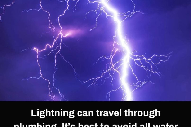 It’s common knowledge you shouldn’t stand in an open field during a lightning storm. But here’s the twist: lightning can travel through plumbing. That means your cozy hot shower turns into a dangerous idea the moment the sky starts rumbling.