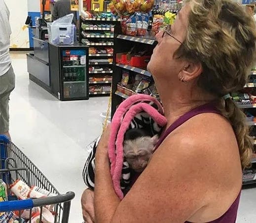 Our previous examples featured dogs and ferrets, the latter being somewhat unusual but at least native to the USA. What’s genuinely uncommon to encounter in public spaces across America is a monkey. However, spotting one at Walmart doesn’t come as a shock. We can only speculate why this woman has a monkey, but they share a close bond. Is it even legal to keep a monkey as a pet in this country? Given that this woman hasn’t been apprehended, it’s safe to assume it is permissible under certain circumstances.