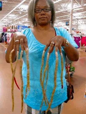 This woman is on a quest to secure her place in the Guinness World Records. One can only imagine her daily challenges with those extraordinarily long nails. Nevertheless, she likely possesses a clear purpose behind maintaining such impressive nail length, a pursuit known best to her alone.