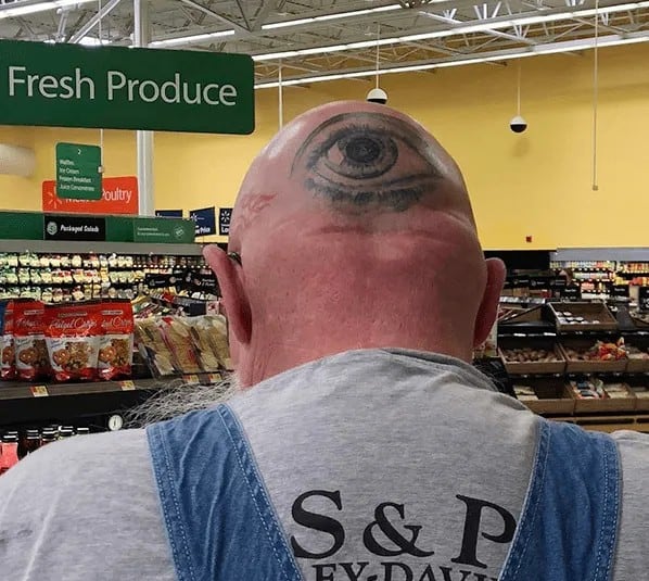 Tattoos can seem like fantastic ideas when we’re young, but sometimes, one must wonder about the level of consideration that goes into getting a tattoo like the one pictured here, especially on the back of the head. Such a tattoo inevitably draws attention, as cameras will likely point at the back of one’s head in public. Perhaps the individual got the tattoo to ward off tigers? There’s a belief that tigers won’t attack someone if they think that person can see them, in which case, this individual might be the wisest of us all…