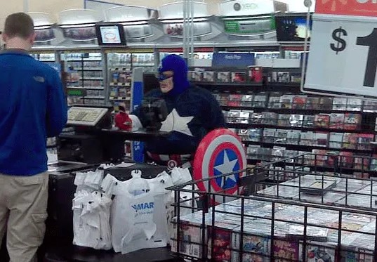 Spotting people in costume at Walmart isn’t all that uncommon, but encountering individuals fully decked out in superhero attire still garners some attention. Even Captain America needs to buy groceries like everyone else, and apparently, he does so at Walmart. Hopefully, his shopping here has something to do with aiding the Avengers; otherwise, Nick Fury might have a few choice words about his conspicuous outings.