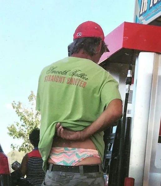 It isn’t easy to decipher precisely what’s happening in this image; perhaps it’s better left that way. While we refrain from passing judgment, this sight would likely catch anyone off guard. Who knows? Perhaps a long day at work and a restless night led him to grab his wife’s underwear instead of his own. Mistakes happen, right? Or maybe he’s an enlightened soul with knowledge the rest of us lack. After all, the wisest individuals often appear a little eccentric to those around them.