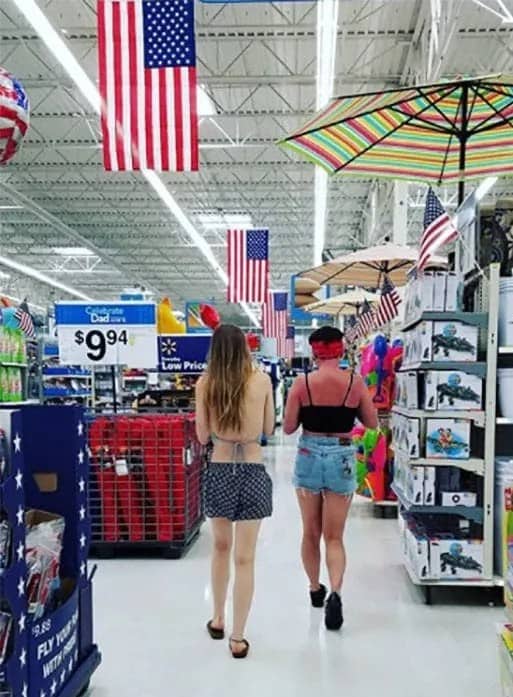 These two women certainly visited the beach, but it’s clear that one of them prioritized sunblock more than the other. This isn’t an exclusive sight to Walmart, but it does seem that the girl on the right is rather enthusiastic about displaying her less-than-ideal decision-making skills. Let’s hope her friend isn’t the type to playfully slap sunburns, although if she were, the sunburned individual might be more motivated to protect themselves on future beach trips.