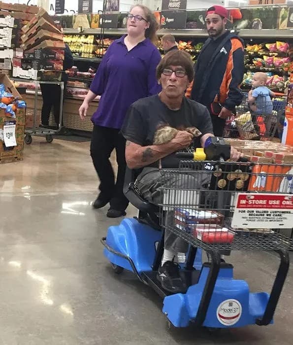 Encounters with animals in Walmart are not uncommon. While dogs are a frequent sight, this retail jungle has also hosted an array of creatures, including turtles, snakes, birds, and, most recently, ferrets. The reason behind this man’s ferret companion remains a mystery, perhaps serving as an emotional support animal. Some might raise an eyebrow at having a rodent-like creature in a place where people purchase food, but evidently, Walmart staff didn’t see it as an issue.